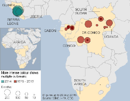 Ngày 8/8/2014.BBC News - Tuyên bố WHO về sự lây lan của Ebola ở Tây Phi là một trường hợp khẩn cấp y tế quốc tế (international health emergency), theo các quan chức WHO thì một đáp ứng quốc tế phối hợp là cần thiết để ngăn chặn và đẩy lùi sự lây lan của virus. Tuyên bố được đưa ra sau khi các chuyên gia đã có một cuộc họp khẩn cấp kéo dài hai ngày ở Thụy Sĩ, cho đến nay hơn 930 người đã chết và hơn 1.700 người mắc bệnh Ebola ở Tây Phi trong năm nay.