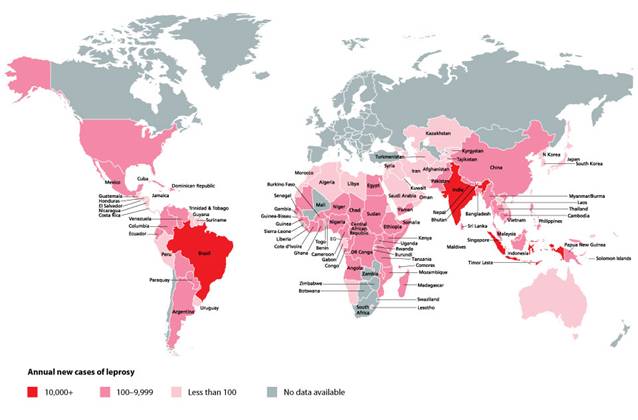 ·Số liệu chính thức từ 115 quốc gia và vùng lãnh thổ cho thấy, tỷ lệ ghi nhận trên toàn cầu của bệnh phong là 189.018 vào cuối năm 2012 và trong năm đó, 232.857 ca mắc mới được báo cáo.