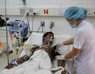 Một bệnh nhân sốt rét ác tính được điều trị tại cơ sở y tế (ảnh Thiên Chương) |