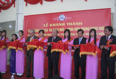 Bệnh viện Trung ương Huế tổ chức Lễ khánh thành, đưa vào sử dụng Trung tâm đào tạo và Khoa Mắt ( trong ảnh:Bộ trường Bộ Y tế Nguyễn Quốc Triêụ cắt băng khánh thành Trung tâm đào tạo và Khoa Mắt (Ảnh NetCoDo) |