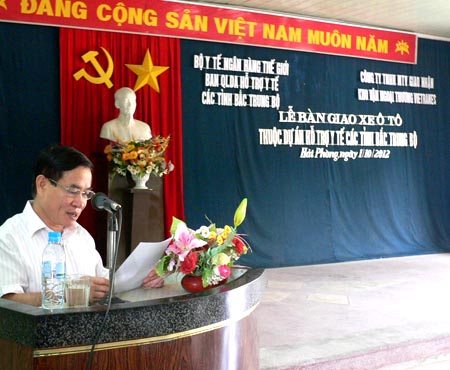Tại buổi lễ bàn giao, Tiến sĩ Hà Văn Thúy, Giám đốc Ban Quản lý Dự án Hỗ trợ y tế các tỉnh Bắc Trung Bộ - Bộ Y tế đã công bố Quyết định số 3182/QĐ ngày 04/9/2012 của Bộ Y tế về việc phân phối 32 xe ô tô cứu thương và 01 xe buýt 45 chỗ cho các tỉnh thuộc Dự án Hỗ trợ y tế các tỉnh Bắc Trung Bộ sử dụng nguồn vốn vay của Ngân hàng Thế giới; đồng thời nêu rõ mục đích, ý nghĩa của việc cung cấpxe ô tô cứu thương để nâng cao năng lực, tạo điều kiện cho các bệnh viện, đặc biệt là bệnh viện ở tuyến huyện tăng cường phương tiện cấp cứu, vận chuyển bệnh nhân, người bị tai nạn thương tích trong bối cảnh tình hình các địa phương đang còn gặp nhiều khó khăn, thiếu thốn. Giám đốc Ban Quản lý Dự án trung ương cũng đã chỉ đạo lãnh đạo các bệnh viện tỉnh, huyện được thụ hưởng dự án đã tiếp nhận xe ô tô cứu thương phải phát huy tinh thần trách nhiệm trong việc sử dụng phương tiện đúng mục đích, có hiệu quả, đúng địa chỉ được cấp và bảo quản phương tiện thật tốt để sử dụng; không được điều chuyển đi đơn vị khác khi chưa có ý kiến của Bộ Y tế, Ngân hàng Thế giới và Ban Quản lý Dự án trung ương.