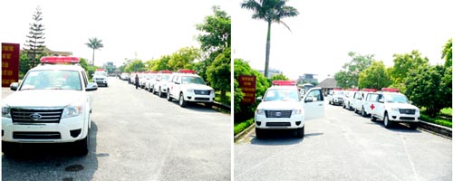 Phương tiện chuyển giao cho các bệnh viện sử dụng thuộc loại xe ô tô cứu thương nhãn hiệu Ford Everest 4x4, 2.6L Petrol được nhập khẩu từ Thái Lan. Trong xe có kèm theo đầy đủ những dụng cụ, trang thiết bị hồi sức cấp cứu cần thiết để cấp cứu, vận chuyển bệnh nhân hoặc nạn nhân trên địa bàn trong trường hợp khẩn cấp phải dùng đến phương tiện. Riêng xe ô tô 45 chỗ ngồi cấp cho Trường Đại học Y khoa Vinh thuộc loại xe có nhãn hiệu Huyndai New Super Aero City được sản xuất tại Hàn Quốc.