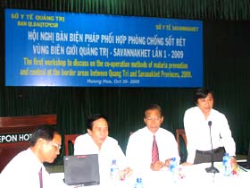 Hội nghị được tổ chức tại huyện Hướng Hóa vào ngày 30/10/2009 với chủ đề “Bàn biện pháp phòng chống sốt rét qua biên giới giữa hai tỉnh Quảng Trị-Savanakhet lần I-2009”. Đến dự Hội nghị về phía ngành y tế Quảng Trị (Việt Nam) có BS. Trần Văn Thành- Giám đốc, TS. Trần Kim Phụng-Phó Giám đốc cùng các chuyên viên thuộc Sở Y tế , Lãnh đạo và chuyên viên Trung tâm Y tế dự phòng tỉnh Quảng Trị, Lãnh đạo và chuyên viên Trung tâm Y tế huyện Hướng Hóa, Lãnh đạo Quân y biên phòng đóng tại tỉnh Quảng Trị; về phía ngành y tế tỉnh Savanakhet (Lao PDR) có BS. Phanang-Giám đốc cùng các chuyên viên Sở Y tế, Lãnh đạo và chuyên viên hai huyện Seepon và Mường Nọng thuộc tỉnh Savanakhet; về phía đại biểu Trung ương có TS. Nguyễn Mạnh Hùng-Viện trưởng cùng các chuyên viên Viện Sốt rét-Ký sinh trùng-Côn trùng Trung ương , TS. Triệu Nguyên Trung cùng các chuyên viên Viện Sốt rét-Ký sinh trùng-Côn trùng Quy Nhơn; về phía cơ quan thông tin đại chúng có Đài phát thanh truyền hình Quảng Trị, Báo Quảng Trị và Trung tâm Truyền thông GDSK thuộc Sở Y tế Quảng Trị cùng một số đại biểu mời có liên quan.