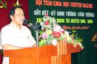 Trong bài phát biểu khai mạc Hội thảo, TS. Nguyễn Huy Nga-Cục trưởng Cục Y tế Dự phòng Việt Nam đã nêu rõ khu vực miền Trung-Tây Nguyên là trọng điểm sốt rét của cả nước, nhưng trong nhiều năm qua Viện Sốt rét-KST-CT Quy Nhơn đã cùng các tỉnh trong khu vực đẩy lùi vững chắc tỷ lệ bệnh và không để dịch sốt rét xảy ra. Tuy nhiên năm 2006 nguy cơ sốt rét quay trở lại ở nhiều vùng; đặc biệt là các vùng có dân di cư tự do, đi rừng ngủ rẫy, giao lưu biên giới Việt Nam-Lào, Việt Nam-Campuchia. Bên cạnh đó nhiều bệnh ký sinh trùng và bệnh do vectơ truyền ở người đang gia tăng như sán lá gan lớn, sốt xuất huyết, viêm não Nhật Bản, giun chỉ bạch huyết, dịch hạch, sốt mò.. ảnh hưởng lớn đến sức khỏe của cộng đồng. Làm thế nào để giảm nguy cơ bệnh tật luôn là sự trăn trở của đội ngũ cán bộ làm công tác khoa học; do đó tập “Kỷ yếu công trình nghiên cứu khoa học giai đoạn 2001-2006” là những thành quả rất đáng trân trọng thể hiện mối quan hệ gắn kết giữa các Viện nghiên cứu, Trường đại học, Trung tâm các bênh nhiệt đới, các Trung tâm PCSR/Trung tâm YTDP trong khu vực và cả nước. Thay mặt Bộ Y tế, đồng chí Cục trưởng Cục Y tế dự phòng đánh giá cao những thành quả nghiên cứu đạt được trong giai đoạn 2001-2006 và hy vọng rằng những kinh nghiệm phòng chống sốt rét và các bệnh ký sinh trùng rút ra từ Hội thảo này sẽ góp phần tích cực làm giảm gánh nặng bệnh tật mang lại sức khỏe cho nhân dân đang sống trong các vùng lưu hành, vùng sâu và vùng xa.
