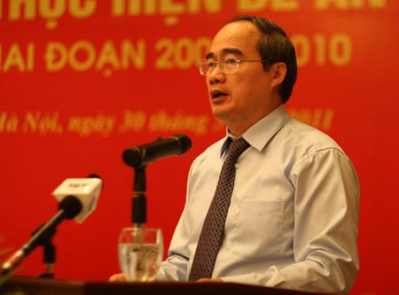 Bộ trưởng Nguyễn Quốc Triệu phát biểu khai mạc Hội nghị. | Phó Thủ tướng Nguyễn Thiện Nhân phát biểu tại Hội nghị. |
