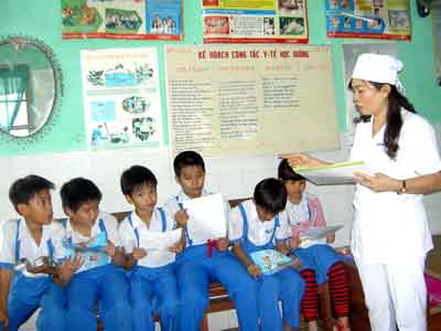 Theo quyết định số 1208/QĐ-TTg ngày 04/9/2012 của Thủ tướng chính phủ phê duyệt Chương trình mục tiêu quốc gia y tế giai đoạn 2012-2015. Trong dự án 5 với nội dung nâng cao năng lực, truyền thông và giám sát, đánh giá thực hiện chương trình; việc truyền thông về y tế học đường được triển khai bằng các hoạt động nâng cao năng lực thực hiện công tác y tế trường học, tăng cường kiến thức phòng chống bệnh tật học đường, ưu tiên cho những vùng khó khăn, góp phần giảm tỷ lệ mắc, kiểm soát và hạn chế một số yếu tố nguy cơ của các bệnh tật học đường phổ biến hiện nay bao gồm cận thị, bệnh giun sán, cong vẹo cột sống, bệnh răng miệng và thay đổi hành vi ở học sinh; tạo điều kiện cho các em phát triển toàn diện thể chất và tinh thần, có sức khỏe tốt để học tập. Tuy nhiên trong thời gian qua mặc dù y tế học đường đã được sự quan tâm nhưng chưa bảo đảm được những yêu cầu cần thiết. Vấn đề vệ sinh trường học từng bước được cải thiện, y tế trường học phát triển còn hạn chế do khó khăn về nguồn nhân lực. Theo quy định của Bộ Giáo dục-Đào tạo và Bộ Y tế, nhân viên làm công tác y tế trường học phải có trình độ từ trung cấp y trở lên thuộc biên chế chính thức của nhà trường. Như vậy các trường tiểu học, trường trung học cơ sở, trường trung học phổ thông và trường phổ thông có nhiều cấp học cần phải có y tế trường học tối thiểu có trình độ từ trung cấp y trở lên để có thể triển khai thực hiện được công tác y tế tại học đường. Mặc dù yêu cầu y tế trường học chỉ cần trình độ trung cấp y, chưa đề cập đến trình độ đại học y nhưng trên thực tế vẫn còn thiếu vắng nhiều do chế độ chính sách, con đường tương lai phát triển không được hấp dẫn, mặn mà thu hút nguồn nhân lực.