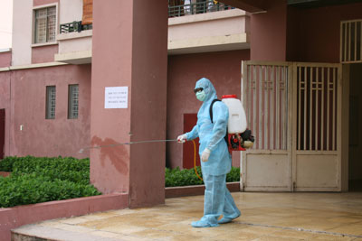 Cúm A/H1N1 cũng được xếp vào nhóm bệnh mới nổi. Tại Việt Nam, năm 2009 liên tiếp ghi nhận các ca nhiễm loại cúm này. Trong ảnh, phun thuốc khử khuẩn môi trường ở khu dân cư có bệnh nhân mắc cúm A/H1N1. Ảnh: H.Hải |