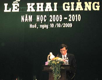 Trong không khí tưng bừng và trang trọng của buổi lễ khai giảng năm học mới thay mặt cho Đảng ủy, Ban giám hiệu Trường Đại học Y Dược Huế, PGS.TS. Cao Ngọc Thành đã kêu gọi toàn thể cán bộ viên chức, sinh viên và học viên đoàn kết một lòng, ra sức cố gắng phấn đấu dạy tốt và học tốt để hoàn thành nhiệm vụ của năm học 2009-2010.