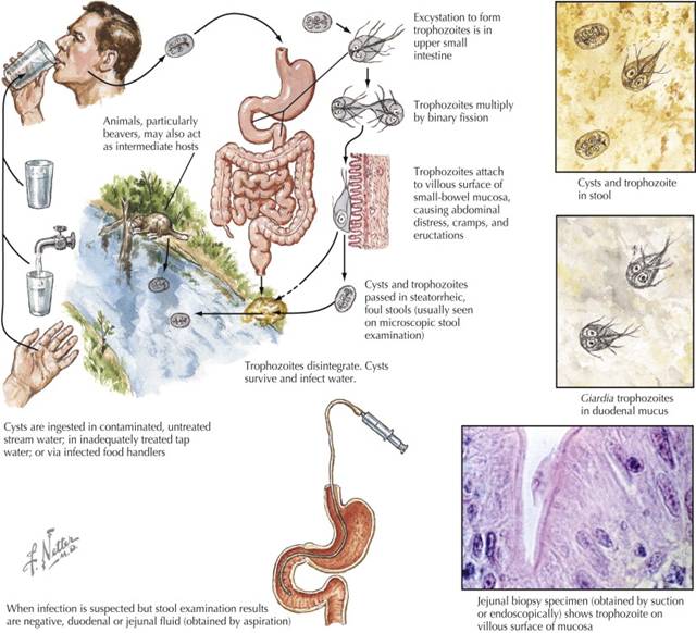 - Khi nang trùng vào cơ thể sẽ biến đổi thành thể tư dưỡng, thích ký sinh ở phần đầu ruột non và chính thể này mới có khả năng sinh sản và gây bệnh.