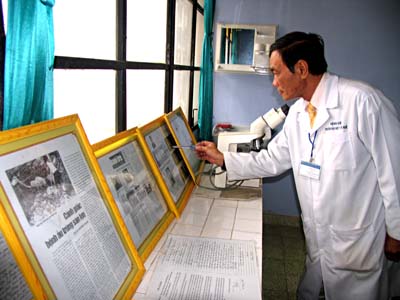 PGS.TS. Trương Quang Ánh-Trưởng Khoa Ký sinh trùng-Trường Đại học Y dược Huế tại phòng thí nghiệm(Ảnh: Võ Thanh Tuấn) |