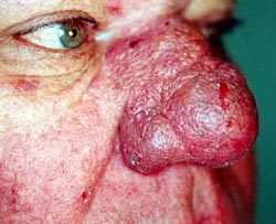 ·  !important; Trứng cá đỏ: là một quá trình viêm mãn tính ở mặt đặc biệt vùng mũi. Bệnh được đặc trưng bởi ban đỏ, sẩn, mụn mủ, giãn mạch và có tăng sinh phì đại tuyến bã- làm cho mũi phát triển to hơn. Thường gặp ở phụ nữ nhiều hơn tuổi từ 30- 50 tuổi, do nội tiết tố ở giai đoạn tiền mãn kinh. cà phê, trà đặc cũng làm tăng bệnh, nên phải tránh các đồ uống này. Có thể tìm thấy tác nhân tham gia quá trình bệnh ở vùng da bị viêm Dermodex folliculorum.