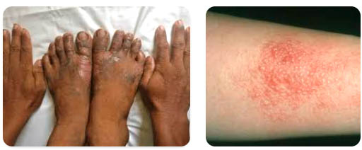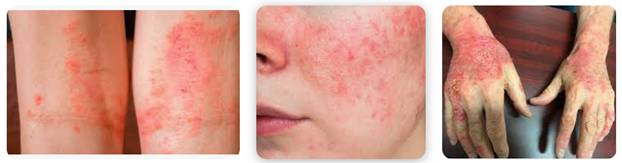 Hình 1. Các hình thái viêm da tiếp xúc dị ứng trên bệnh nhân |Nguồn: Healthline, 2022