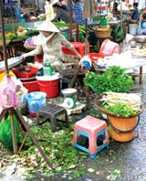 Tập quán ăn uống của người dân cũng có liên quan đến nhiễm mầm bệnh từ thức ăn đường phố, một dịch vụ ngày càng phát triển và khá phổ biến vì nó đã đáp ứng nhu cầu rất lớn trong sinh hoạt của cộng đồng hiện nay. Nghiên cứu tại Hà Nội ghi nhận có 90,8% số người ăn sáng ngoài gia đình; 81,5% số người ăn trưa ngoài gia đình và 17,7% số người ăn tối ngoài gia đình. Việc bảo đảm an toàn vệ sinh thực phẩm ở các dịch vụ thức ăn đường phố còn nhiều hạn chế vì có hơn 70% cơ sở kinh doanh, chế biến thực phẩm nhỏ lẻ, chủ yếu là quy mô hộ gia đình và cá thể nên nguy cơ nhiễm mầm bệnh là điều không thể tránh khỏi.