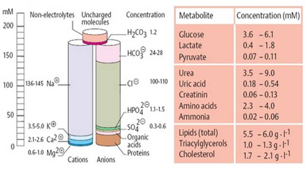 Nói tóm lại, có thể tóm tắt các thành phần sinh hóa trong máu (khoảng giá trị tham chiếu bình thường có thể thay đổi tùy thuộc ngưỡng giá trị nghiên cứu trên một quần thể người quy mô lớn ở các quốc gia, lãnh thổ và thời gian thực hiện nghiên cứu), đặc biệt các thành phần trong huyết tương như dưới đây: