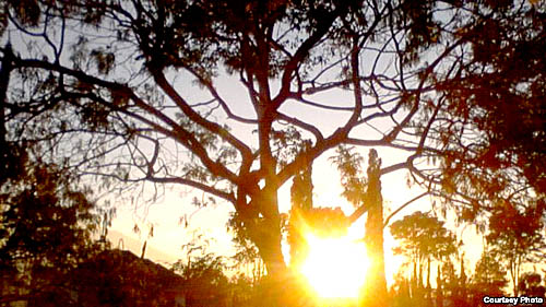 Ánh nắng mặt trời xuyên qua hàng cây |