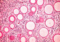 Rất có thể bạn đã bị nhiễm nấm như bác sĩ chuyên khoa da liễu đã chẩn đoán. Bệnh thường hay gặp ở mũi, mắt do loài nấm Rhinosporidium seeberi gây nên và lây nhiễm qua bụi, nước bẩn. Bệnh phát hiện ở khắp nơi trên thế giới nhưng thường thấy ở Ấn Độ, Srilanka; ngoài ra còn gặp ở Nam Mỹ, châu Phi, Đông Nam Á... Tỷ lệ nhiễm bệnh ở giới nam cao hơn giới nữ khoảng 4 lần, thường xảy ra trên đối tượng trẻ em và người trưởng thành. Các nhà khoa học đã phân tích tác nhân gây bệnh Rhinosporidium seeberi ở ranh giới giữa nấm và động vật đơn bào.