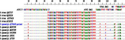 Trong nghiên cứu này, hai phương pháp PCR cho kết quả khác nhau nhưng trình tự cho thấybệnh nhân nhiễm do P. cynomolgi.Đoạn mồi NewPLFshort bắt cặp cùng với mồi đặc hiệu VIRsh của P. vivax ở NM -PCR đã không cho thấy bất kỳ sản phẩm khuếch đại như nó đã được mong đợi nhiễm P. cynomolgi. Ngược lại, bằng cách sử dụng mồi rVIV1 và rVIV2, trong xét nghiệm Snounou - PCR mẫu bệnh nhân được xác định là P. vivax cho thấy có thể khuếch đại chéo.