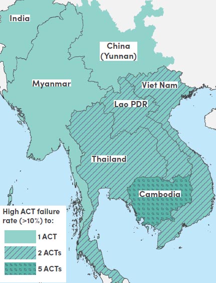 Hình 5. Một số vùng báo cáo thất bại với thuốc ACTs cao tại Đông Nam Á