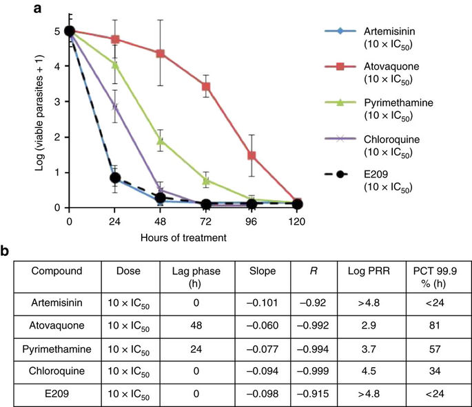 So sánh và đối chiếu với các nghiên cứu in vivo gần đây, như ở Phú Yên cho hiệu lực phác đồ DHA-PPQ trong điều trị sốt rét do P. falciparum chưa biến chứng cho thấp đáp ứng lâm sàng và ký sinh trùng đầy đủ (ACPR) là 100%, không có trường hợp thất bại điều trị sớm hoặc muộn, tổng số ca mất theo dõi do nhiều lý do là 3 (8,11%) và đặc biệt chưa có ca nào còn tồn tại KSTSR ngày D3 sau điều trị. Một số nghiên cứu khác thực hiện tại khu vực miền Trung-Tây Nguyên, chẳng hạn nghiên cứu đánh giá hiệu lực thuốc DHA-PPQ đối với P. falciparum tại huyện Cư Jut, tỉnh Đăk Nông cho thấy dù tỷ lệ đáp ứng lâm sàng và ký sinh trùng đầy đủ là 100%, hiệu lực rất cao trong điều trị, song đáng chú ý sự tồn tại ký sinh trùng P. falciparum thể vô tính được đánh giá sau mỗi 12 giờ sau khi dùng thuốc DHA-PPQ, cho thấy tỷ lệ tồn tại ngày D3 là 15,5% và sau D3 còn là 7,04%- như một chỉ điểm lâm sàng nghi ngờ kháng thuốc tại vùng này, trước khi khẳng định có kháng thuốc thì cần có phân tích thêm về mặt gen học, phát hiện đột biến đơn điểm K13 propeller theo quy định và định nghĩa kháng thuốc của TCYTTG năm 2014.