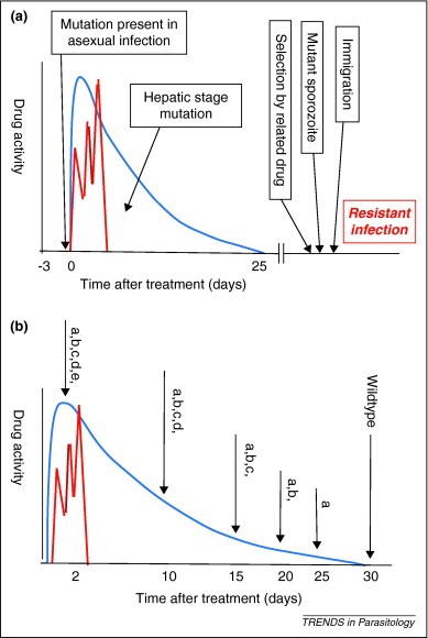 -Áp lực thuốc: khi dùng 1 loại thuốc trong 1 thời gian dài ở phạm vi rộng trong quần thể, nhất là vùng SRLH cao, sẽ tạo điều kiện thuận lợi cho chủng biến dị, kháng tự nhiên dần nhân lên, thay thế những chủng nhạy bị diệt từ từ (quá trình sàng lọc cạnh tranh do áp lực thuốc). Gen nhạy và gen kháng của P. falciparum là một phức hợp đã được chứng minh rằng nếu đơn dòng thì sẽ có đáp ứng khác nhau với thuốc (hay dòng nhạy/ dòng kháng). Khi dùng một loại thuốc thời gian dài ngoài sự kiểm soát, không đủ liều mà mật độ KST cao sẽ khó diệt tận gốc, thì chủng KSTSR dễ thích nghi dần với thuốc [66];