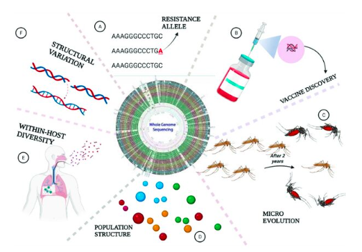Hình  Nghiên cứu đa ngành tập trung vào các loài KSTSR đã giúp lý giải cơ chế bệnh sinh và kháng thuốc do các loài, kể cả P. malariae.  Nguồn: https://www.researchgate.net/publication/359920502_Whole genome sequencing contributions and challengesin disease reduction focused on malaria/