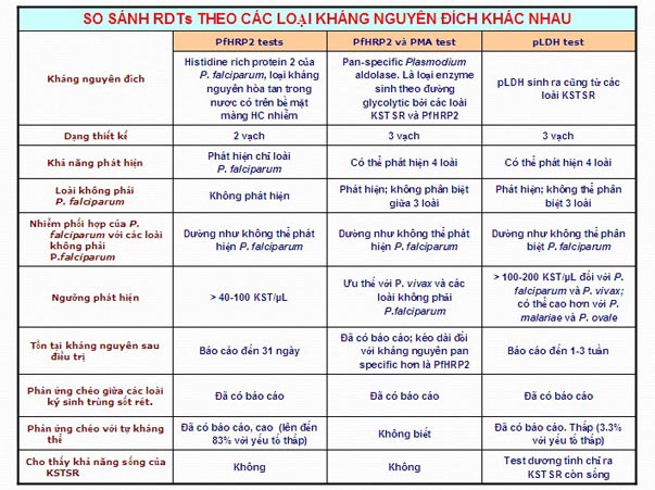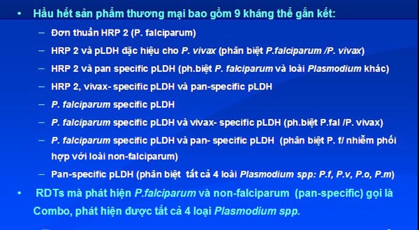 Đối với loại test PfHRP2/PMA thì độ nhạy phát hiện đối với P. v thấp hơn;