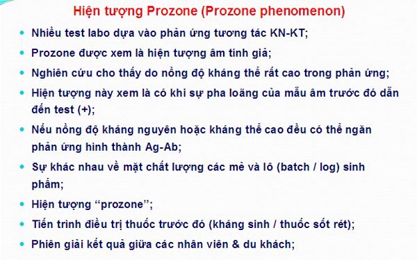 Điều này, chúng tôi cũng đã đề cập trong các chuyên mục chẩn đoán bệnh sốt rét trước đây và đưa ra 8 bằng chứng để giải thích các hiện tượng như thế. Song, gần đây chúng tôi có biết thêm một hiện tượng có thể làm thay đổi kết quả xét nghiệm nhanh, hoặc gây ra kết quả âm tính giả trong một số trường hợp. Chúng tôi xin chia sẻ hiện tượng này, có tên là hiện tượng Prozone (Prozone phenomenon) được đề cập khá nhiều trong y văn.