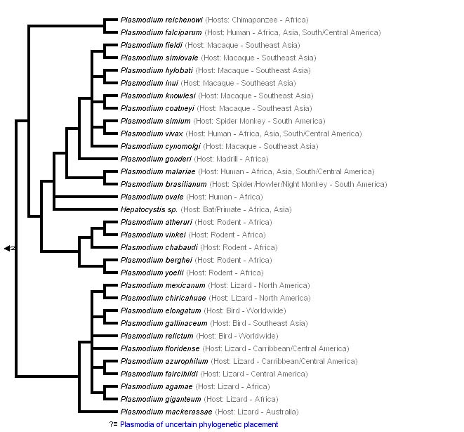 11.Martinsen ES, Perkins SL, Schall JJ. 2008. A three-genome phylogeny of malaria parasites (Plasmodium and closely related genera): Evolution of life-history traits and host switches. Mol Phylogenet Evol 47(1):261-273.