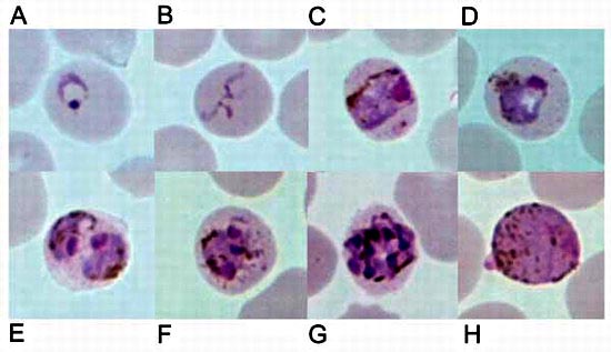 KSTSR Plasmodium các giai đoạn trong hồng cầu: