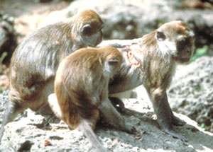 23.Aureli, Filippo (1992). "Post-conflict behaviour among wild long-tailed macaques, (Macaca fascicularis)". Behavioral Ecology and Sociobiology 31: 329–337. doi:10.1007/bf00177773.