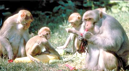 Một nghiên cứu tiến hành với thức ăn được cho đến 11 con cái. Tiếp đó, chúng được cho lựa chọn để chia sẻ thức này đến các con họ hàng và không phải họ hàng. Giả thuyết về lòng vị tha cho thấy các khỉ mẹ ưu ái thức ăn cho các con mà chúng sinh ra. Tuy nhiên, 8 trong số 11 con cái không phân biệt được đâu là họ hàng và không phải họ hàng. Ba con còn lại thì cho thức ăn cho con hoặc họ hàng của chúng. Kết quả này cho thấy không có sự lựa chọn về họ hàng nhưng thay vì thế mà chúng lại ưu thế chia phần thức ăn cho họ hàng nhiều hơn. Điều này lần nữa khẳng định nhờ vào quan sát thấy thức ăn được chia phần trong một thời gian dài hơn mức cần thiết. Lợi điểm đối với mẹ bị giảm đi sự sắn có thức ăn ít đi cho con khỉ mẹ và chi phí vẫn còn rất lớn đối với các thành viên không phải họ hàng cũng tiếp nhận thức ăn. Nếu các kết quả này đúng, các khỉ macaques là độc nhất trong giới động vật, cũng như chúng không chỉ hành vi theo lý thuyết con khỉ liên quan họ hàng, mà còn hành động một cách ác ý hướng về con khác.