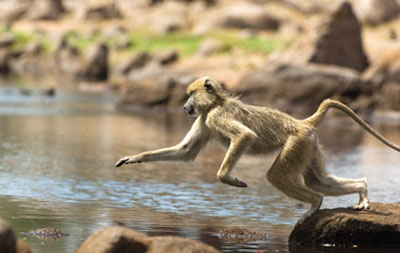 Các khỉ macaque ăn cua là một trong những loàiđược sử dụng như một test thử kiểm tra khoảng không gian mà các động vật này bay.