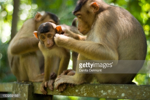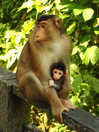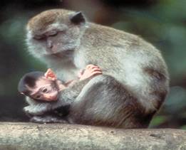 Hình 5c. Chăm sóc con cái của khỉ đuôi dài mới sinh ra