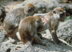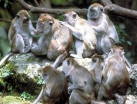 Hình 5b. Một số thói quen chăm sóc và sống bầy đàn khỉ đuôi dài