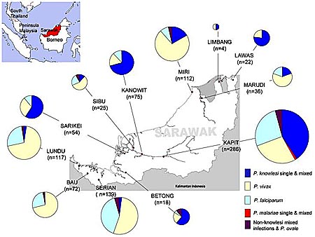 Trước nghiên cứu của Singh B. và cộng sự bắt đầu vào tháng 3.2000, các nhà khoa học đã ghi nhận các khác biệt chính về các tỷ lệ của các loài Plasmodium được báo cáo ở Sarawak. P. vivax phân bố rộng rãi trong 9 vùng địa lý, trong khi P. falciparum lại chiếm ưu thế ở các vùng phía bắc của bang và KSTSR được phát hiện gần giống như P. malariae được báo cáo chủ yếu ở các vùng trung tâm của Kapit và Miri. Tại Kapit, KSTSR được phát hiện bằng kính hiển vi giống như P. malariae chiếm tỷ lệ khoảng 1/5 số trường hợp sốt rét năm 1999.
