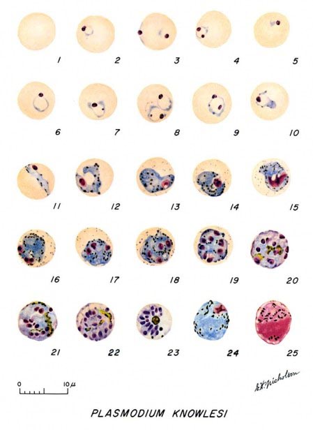 8.Garnham PCC, Lainson R, Cooper W (1957). "The tissue stages and sporogony of Plasmodium knowlesi". Trans Roy Soc Trop Med Hyg. 51 (5): 384–396.