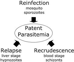 Tái phát do sự tái hoạt của thể ngủ khi nhiễm phải KSTSR P. vivax, chính vì vậy, khi có xuất hiện KSTSR P. vivax trong máu sau khi điều trị có thể do tái phát (relapse), tái phát sớm do sự sống sót của ký sinh trùng thể vô tính do điều trị không dứt điểm (recrudescence) hoặc tái nhiễm (reinfection), cả 3 thuật ngữ này đều rất khó phân biệt một cách tin cậy với các công cụ phân tích hiện có. Sự tái phát không thể tiên đoán vào lúc nào, có thể là vài tháng đến vài năm và yếu tố nào thúc đẩy tiến trình tái hoạt đến nay vẫn chưa thấu hiểu (Nicolas X và cs., 2000). Một nghiên cứu đa trung tâm và tại đa quốc gia, đánh giá hiệu lực trên 149 bệnh nhân nhiễm P. vivax, trong đó tại Thái Lan có 36 bệnh nhân (n = 36), Myanmar (n = 75) và Ấn Độ (n = 38), kết quả qua phân tích giải trình tự cho biết có 107/149 bệnh nhân (72%) có xuất hiện lại KSTSR (78% ở nhóm bệnh nhân Thái Lan, 75% ở Myanmar và 63% ở Ấn Độ). Trong 61% ở nhóm bệnh nhân Thái Lan và Myanmar và 55% ở Ấn Độ không thấy kiểu gen KSTSR giống như kiểu gen ban đầu bệnh nhân bị sốt rét cấp tính, do vậy chưa thể kết luận rõ ràng (Imwong M. và cs., 2007).