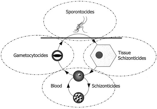 Tính nhạy của CQ trên in vitro của cặp giai đoạn tư dưỡng và thể nhẫn từ 11 phân lập lâm sàng của P. vivax được bảo quản lạnh từ Thái Lan và hai dòng P. falciparum (K1 kháng CQ và FC27 nhạy với CQ) được đánh giá sử dụng phương pháp WHO microtest cải tiến và Fluorometric SYBR Green I Assay. Thời gian mỗi giai đoạn phơi nhiễm với CQ được kiểm tra bởi làm sạch thuốc CQ ở giờ 20 sau khi điều trị. Các phân lập Plasmodium vivax thêm vào thử nghiệm ở giai đoạn thể nhẫn thấp hơn có ý nghĩa IC50s trung bình với CQ thấp hơn so với cùng phân lập ở giai đoạn tư dưỡng (median IC50 12 nM vs. 415 nM p < 0.01). Dù chỉ 36% (4/11) của SYBR Green I assays đối với P. vivax là thành công, cả thử nghiệm vi thể và SYBR Green I assays cho thấy chỉ có tư dưỡng P. vivax có thể phát triển thành thể phân liệt ở nồng độ CQ cao hơn 100 nM.