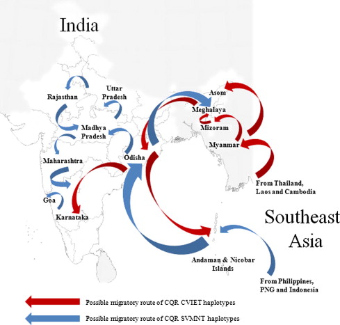 Ấn Độ là quốc gia với tình hình SR khá phức tạp, đặc biệt hơn là tỷ lệ P. vivax tại đây cũng không nhỏ, nên số nghiên cứu in vivo thực hiện thường xuyên và kéo dài thời gian theo dõi. Trường hợp P. vivax kháng CQ đầu tiên tại quốc gia đông dân thứ hai này là vào năm 1995 (Nandy A và cs., 2003), nghiên cứu thứ hai tiến hành tại 5 làng thuộc khu vực Nadiad Taluka, quận Kheda, tỉnh Gujarat đánh giá hiệu lực CQ liệu trình 5 ngày cũng cho thấy có tỷ lệ tái phát 28.31%, tỷ lệ tái phát cao nhất ở nhóm tuổi từ 5 - 10, không có sự khác biệt giữa nam và nữ, chủ yếu là thời gian tái phát ngắn sau 2 - 3 tháng, thời gian tái phát dài nhất là 17 tháng chỉ có 1 trường hợp (Srivastava HC và cs., 1996); Nghiên cứu thứ ba tiến hành tại Mumbai, Ấn Độ đánh giá hiệu lực phác đồ trên 283 trường hợp nhiễm P. vivax với phác đồ CQ, điểm thú vị trong nghiên cứu này là thời gian theo dõi rất dài, lên đến 12 tháng, tổng số 150/283 trường hợp theo dõi đủ 12 tháng thì có đến 19 ca tái phát và trong số 17/19 ca đó tái phát trong vòng 6 tháng đầu và xác định là chủng Chesson (Gogtay NJ và cs., 2000). Tiếp đó, một nghiên cứu thứ 4 tiến hành nhằm đánh giá hiệu lực CQ trên bệnh nhân mắc P. vivax tại Calcutta và Orissa, Ấn Độ trên 800 trường hợp từ năm 1998 - 2001 cho kết quả theo dõi đủ liệu trình là 480 và có 6 trường hợp kháng thuốc CQ (1.25%) và thời điểm vẫn còn lại KSTSR P. vivax là D5 (Nandy A, Addy M., 2003).