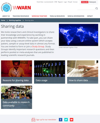 Chia sẽ dữ liệu với WWARN cho phép đưa ra các đánh giá tốt hơn về dữ liệu của bạn từ việc so sánh với tất cả các dữ liệu gửi cho chúng tôi. Bạn có thể đóng góp dữ liệu của mình cho dự án WWARN bằng việc sử dụng cùng tên đăng nhập và mật khẩu. Nếu bạn muốn so sánh dữ liệu của mình với các bản tóm tắt trong các bài báo đã được thẩm định đang có, hãy liên hệ với địa chỉ mail