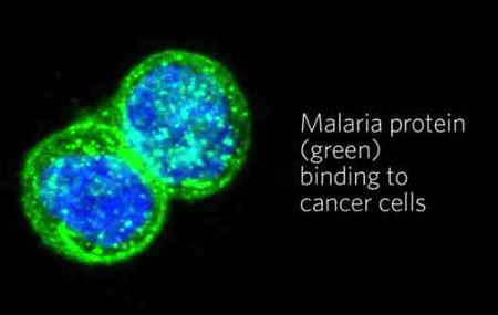 Trong phòng thí nghiệm, các nhà khoa học đã tạo ra những protein mà các ký sinh trùng sốt rét sử dụng để chui vào nhau thai và sau đó đã tiêm vào một độc tố. Sự kết hợp của protein sốt rét và độc tố nhằm tìm ra các tế bào ung thư, sau khi được hấp thụ, độc tố phát tán bên trong nhau thai và sẽ tiêu diệt tế bào ung thư. Quá trình này đã được thử nghiệm trong nuôi cấy tế bào và ở những con chuột bị ung thư. Phát hiện được mô tả tóm tắt qua bài Hướng đến mục tiêu điều trị ung thư ở người bằng một glycosaminoglycan liên kết với protein sốt rét ấn bản trên tạp chí khoa học Cancer Cell.