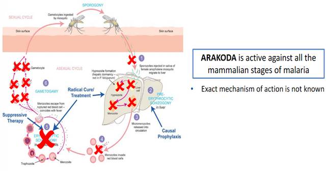 Hình 8. Arakoda có hoạt tính chống lại các giai đoạn KSTSR trên động vật có vú.