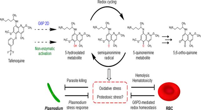 Hạn chế chính của thiết lập chương trình điều trị với thuốc 8-aminoquinoline nói chung là do lo sợ tan máu do phản ứng oxy hóa này. Tan máu có thể đe dọa tính mạng trên các bệnh nhân thiếu glucose-6-phosphate dehydrogenase (G6PD), điều này rất phổ biến trên quần thể đang sinh sống tại các vùng sốt rét lưu hành (SRLH) (Recht và cs., 2014). Do đó, liều tối ưu của thuốc 8-aminoquinoline cần cân nhắc giữa lợi điểm (có thể áp dụng trên tất cả bệnh nhân điều trị) và nguy cơ (sinh ra từ phần lớn các nhóm bệnh nhân thiếu G6PD). Thuốc TQ đã được thiết kế ổn định hơn thuốc PQ. Sự đóng góp của các chất chuyển hóa có tính oxy hóa vào hoạt tính dược học của thuốc TQ vẫn chưa hiểu thấu đáo (St Jean và cs., 2020). Ngoài ra, cơ chế hoạt động chính xác của 8- aminoquinoline trong việc giết thể ngủ vẫn còn chưa rõ ràng (James A Watson và cs., 2022).