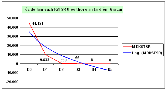 Trong số 65 ca đánh giá, có đến 11 ca (≈ 17%) còn tồn tại dương tính đến ngày D3 hoặc D4. Số liệu cho thấy diễn tiến làm sạch KSTSR trung bình qua thời gian mỗi 24 giờ từ D0 đến D3 hoặc D4 giảm rất rõ theo từ 44.121/mL à 9.633/mL à 358/mL à 66/mL à 8/mL à0/mL.