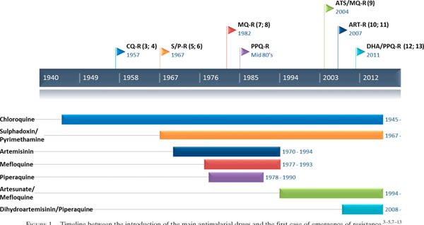 Hình 5. Lịch sử phát triển và xuất hiện kháng thuốc sốt rét từ năm 1940 đến 2012