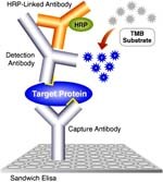 Với mục đích góp phần chẩn đoán bệnh nhiễm ký sinh trùng Angiostrongylus cantonensis ở người, nhiều kit ELISA ra đời để phát hiện ra kháng thể đặc hiệu với kháng nguyên A. cantonensis (specific Ab-Ag), kỹ thuật miễn dịch hấp thụ men (ELISA) được nghiên cứu để chẩn đoán rất nhiều bệnh do ký sinh trùng, trong đó có bệnh A. cantonensis ở người. Kháng nguyên A. cantonensis ở nồng độ 3ng/ml gắn kết với kháng thể có trong huyết thanh chứng (+) tạo thành phức hợp kháng nguyên-kháng thể (Ag-Ab). Phức hợp này được phát hiện bởi cộng hợp IgG thỏ kháng IgG người có gắn peroxydase với sự hiện diện của chất nền.