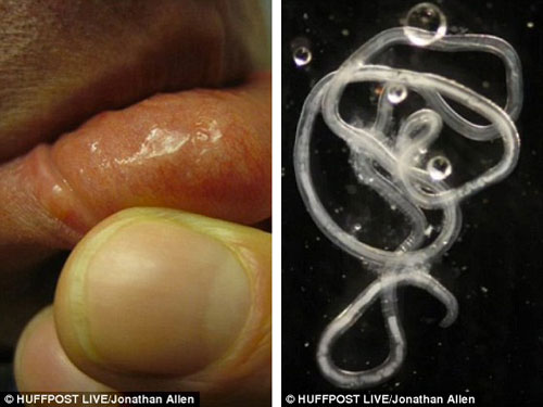 Ấu trùng giun không ngừng di chuyển từ môi sang má của tiến sĩ Jonathan Allen |