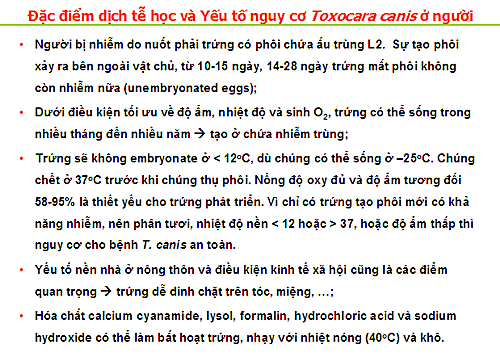 Những năm gần đây, ấu trùng giun đũa chó/mèo (Toxocara canis/cati) ký sinh, gây bệnh ở người trở nên phổ biến và ảnh hưởng không nhỏ tới sức khỏe người dân. Điều đáng quan tâm hơn là chúng còn có khả năng gây bệnh ở nhiều loài động vật khác nên nguy cơ phơi nhiễm bệnh trong cộng đồng rất cao.