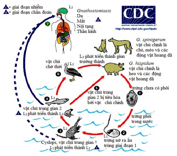 Hình 3. Chu kỳ phát triển của Gnathostoma spp. | Nguồn: CDC, 2015