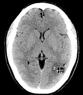 Sau khi thăm khám và điều tra bệnh sử, chụp cắt lớp vi tính có hoặc không có bơm thuốc cản quang đường tĩnh mạch là bước đầu tiên trong chẩn đoán các ca bệnh nghi ngờ ATSL thần kinh. CT não có hoặc không có thuốc cản quan sẽ cho thấy hình ảnh các tổn thương điển hình của ATSL đường kính nhỏ hơn 20mm và không có hình ảnh phản đứng giữa (no midline shift) là hình ảnh gợi ý cao cho thể ATTSL thần kinh (neurocysticercosis). Phần scolex, hoặc phần giác hút của ấu trùng cũng có thể nhìn thấy; đây là đặc trưng bệnh của ATSL thể thần kinh.